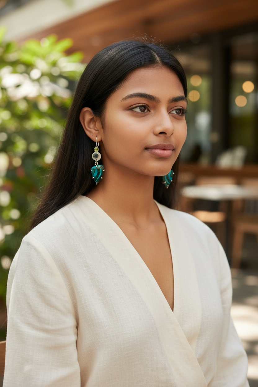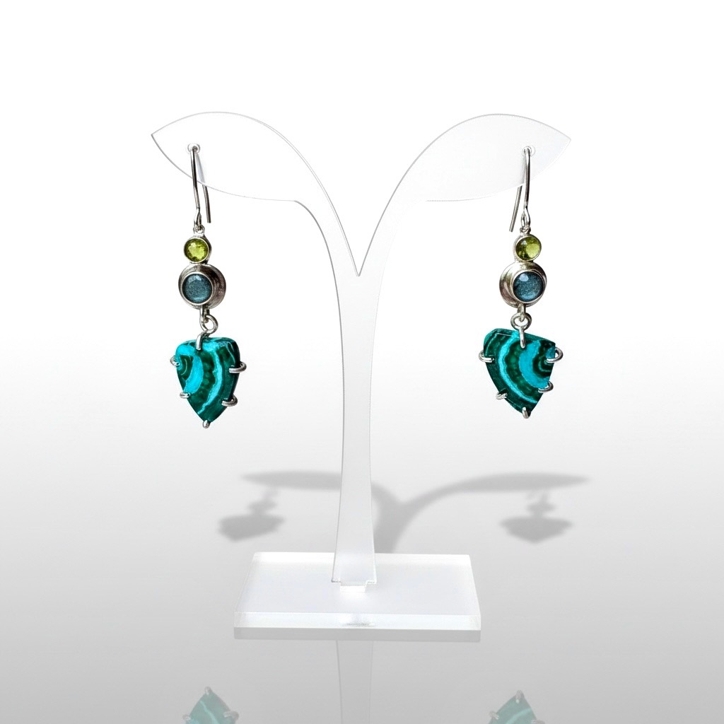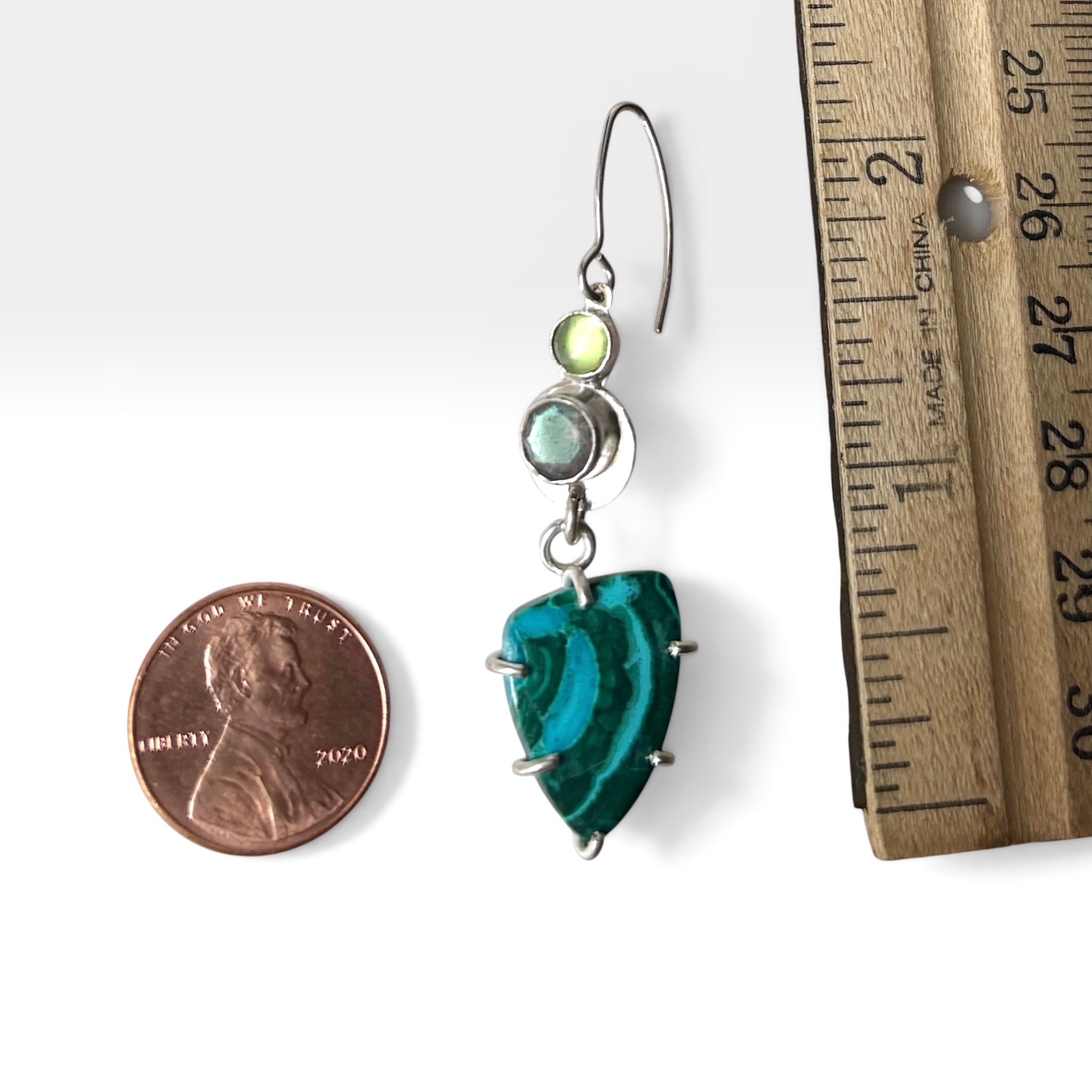 This piece features a stunning azurite malachite stone, beautifully complemented by faceted labradorite and vibrant lime-green peridot, all set in sterling silver. Inspired by nature and her surroundings, this design reflects Lisa’s signature style. Signed by Lisa Scala and marked .925 sterling.