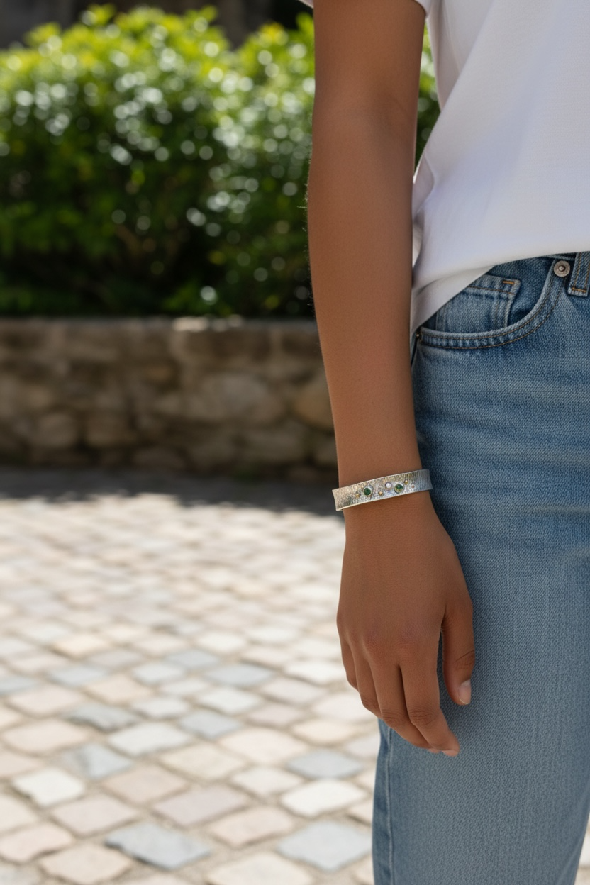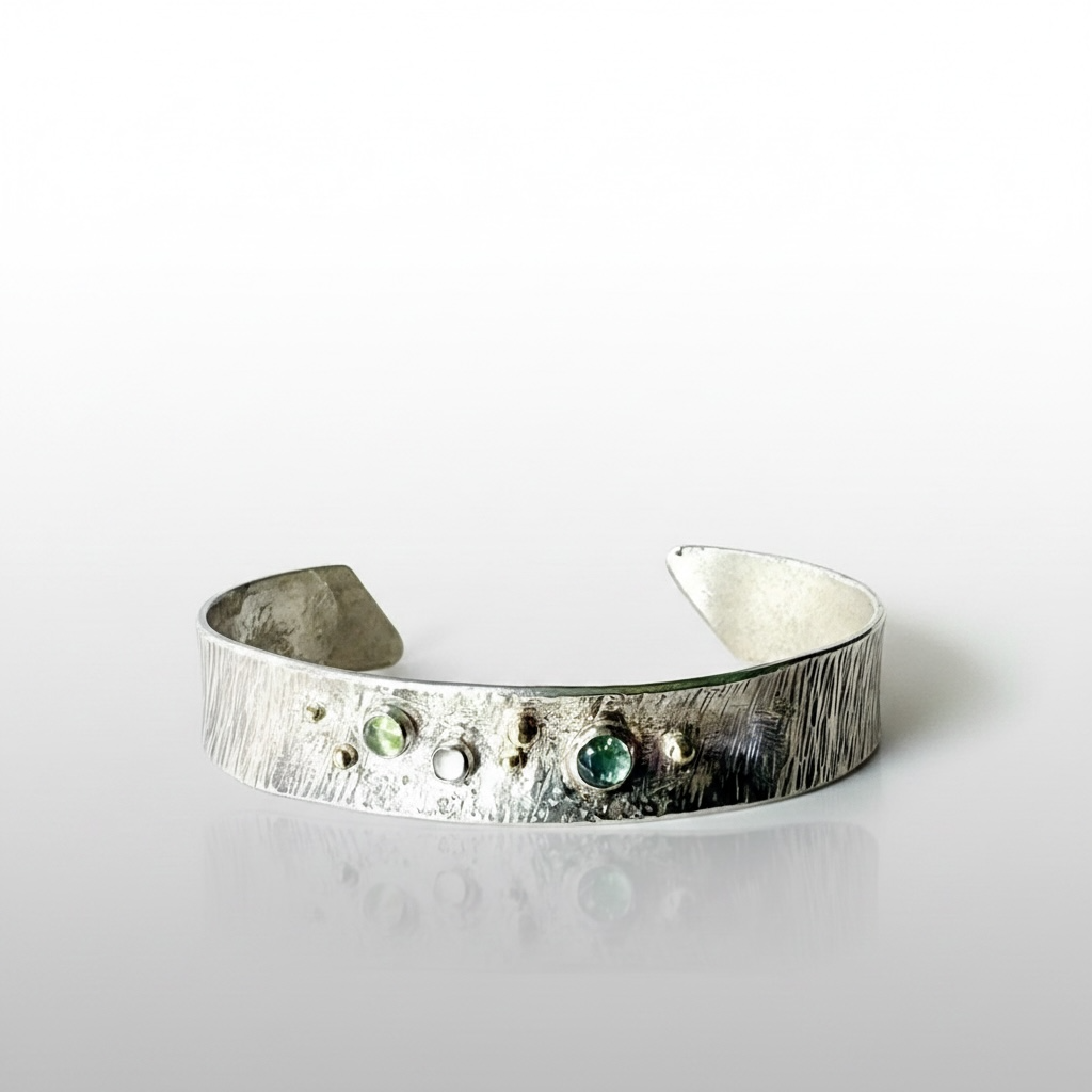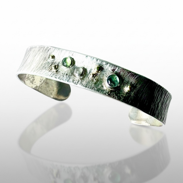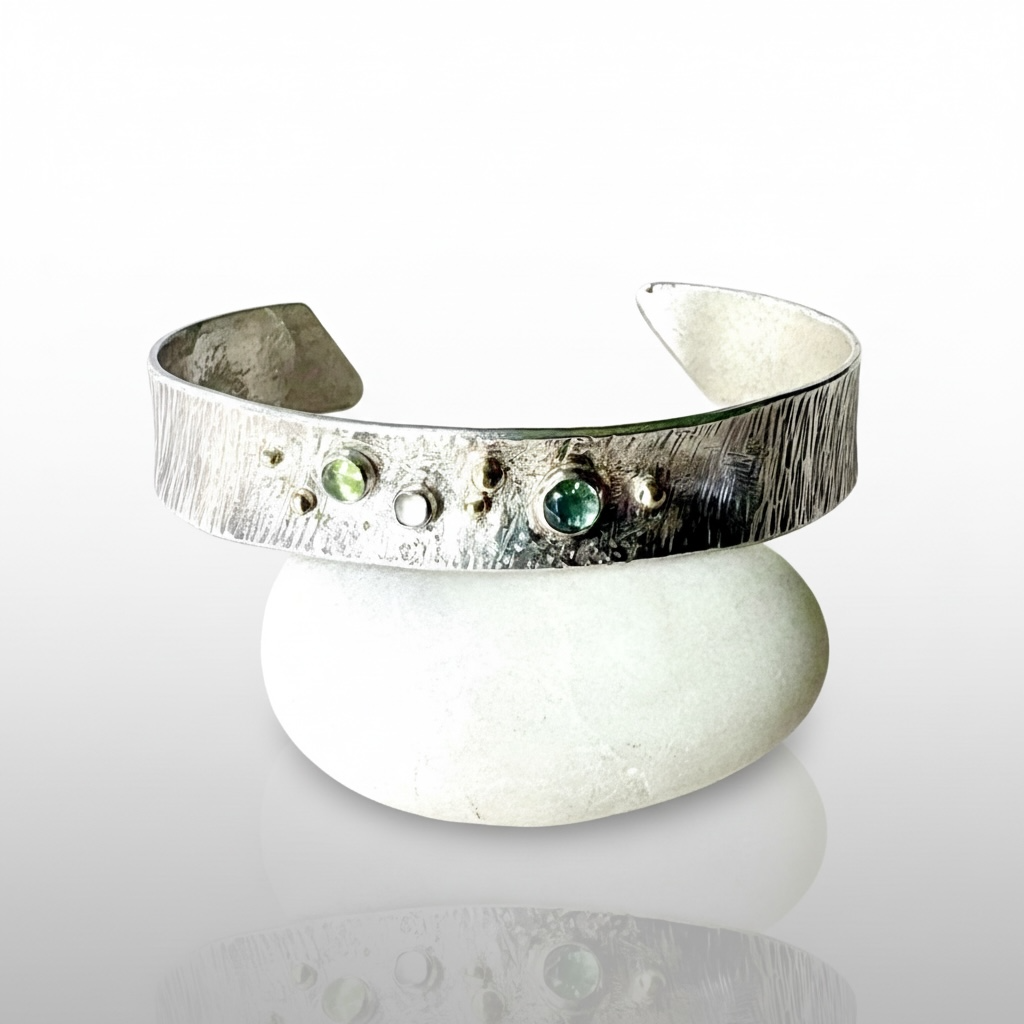 Hammered Cuff Gemstone Bracelet – Sterling, Gold