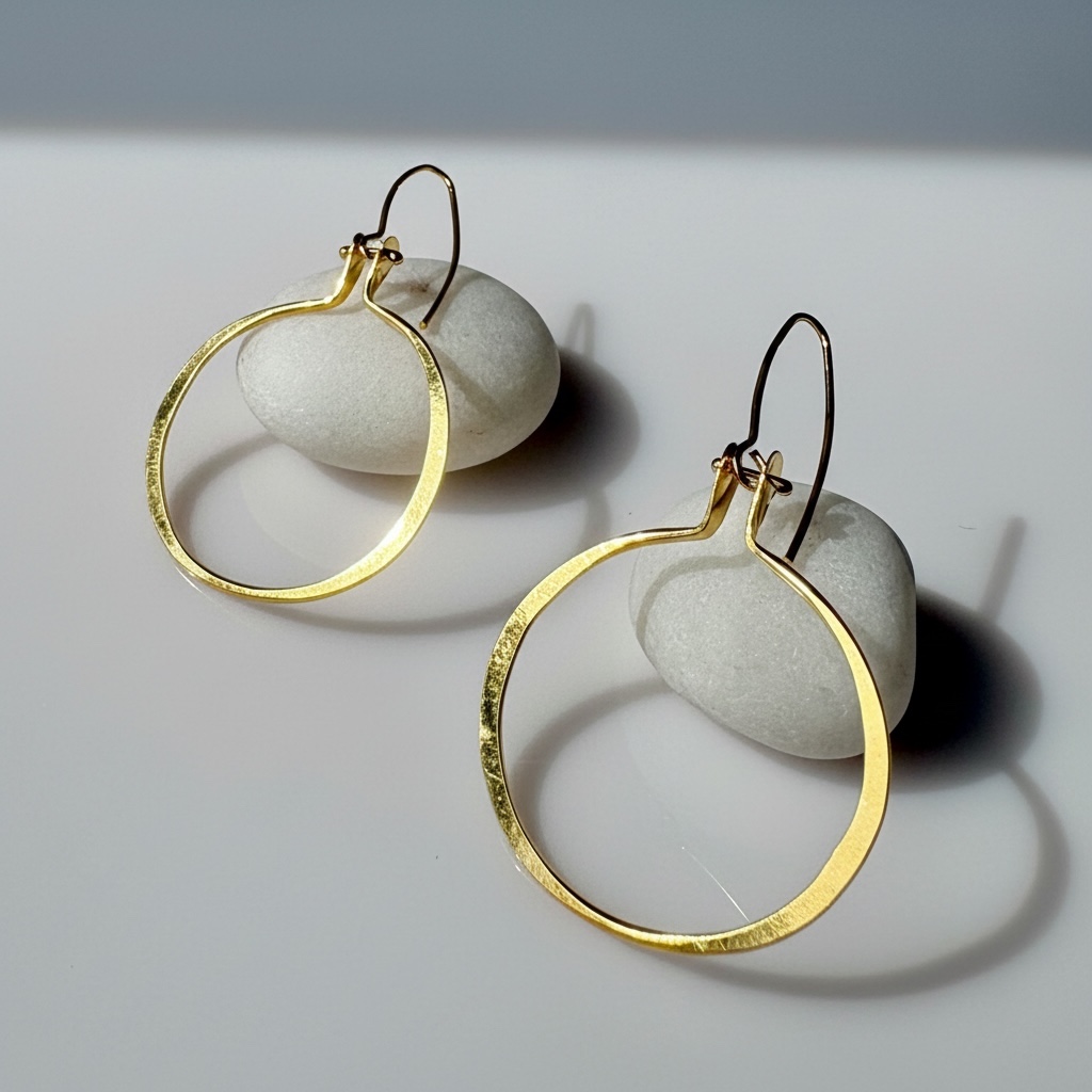 A classic look with a contemporary edge! These handcrafted hoop earrings feature a generous layer of 18k gold over sterling silver. Their simple, elegant design incorporates a movable hinge for added interest. Signed by Lisa Scala and marked .925 sterling.