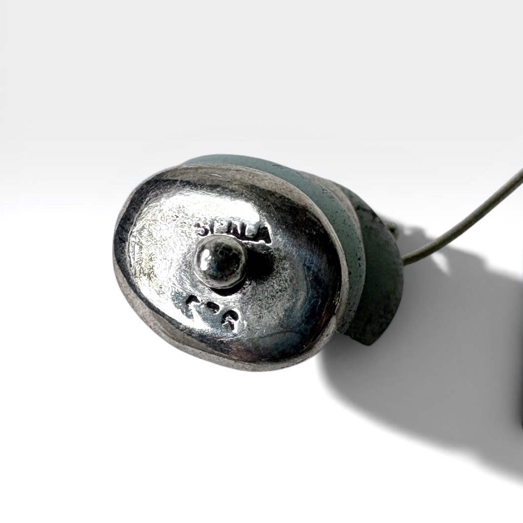 Zen Stones Necklace – An elegantly soothing feel! This handcrafted necklace features a cairn-like structure of hand-carved sterling silver stones and natural beach stones. Hanging on a sterling silver chain, the stones turn easily with barely a touch to provide a relaxing sensation. Beach stone colors and shapes may vary. Signed by Lisa Scala and marked .925 sterling.
